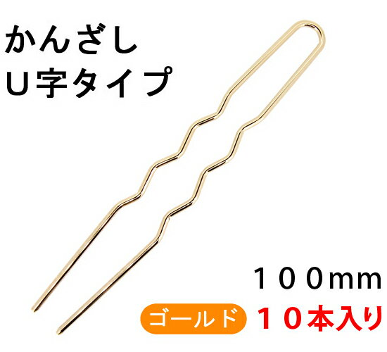 アクセサリーパーツ 金具 かんざし U字タイプ 100mm 金色 ゴールドカラー 10本入りサービスパック