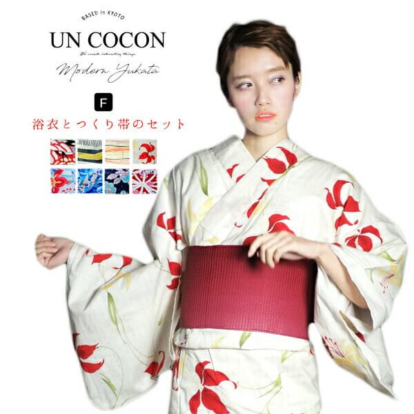 浴衣 セット 作り帯 2点 レトロ 2点セット ゆかた 2点 大人シック レトロ モダン ゆかたセット 大人 綺麗 華やか はんなり京美人 作り帯 変わり織生地